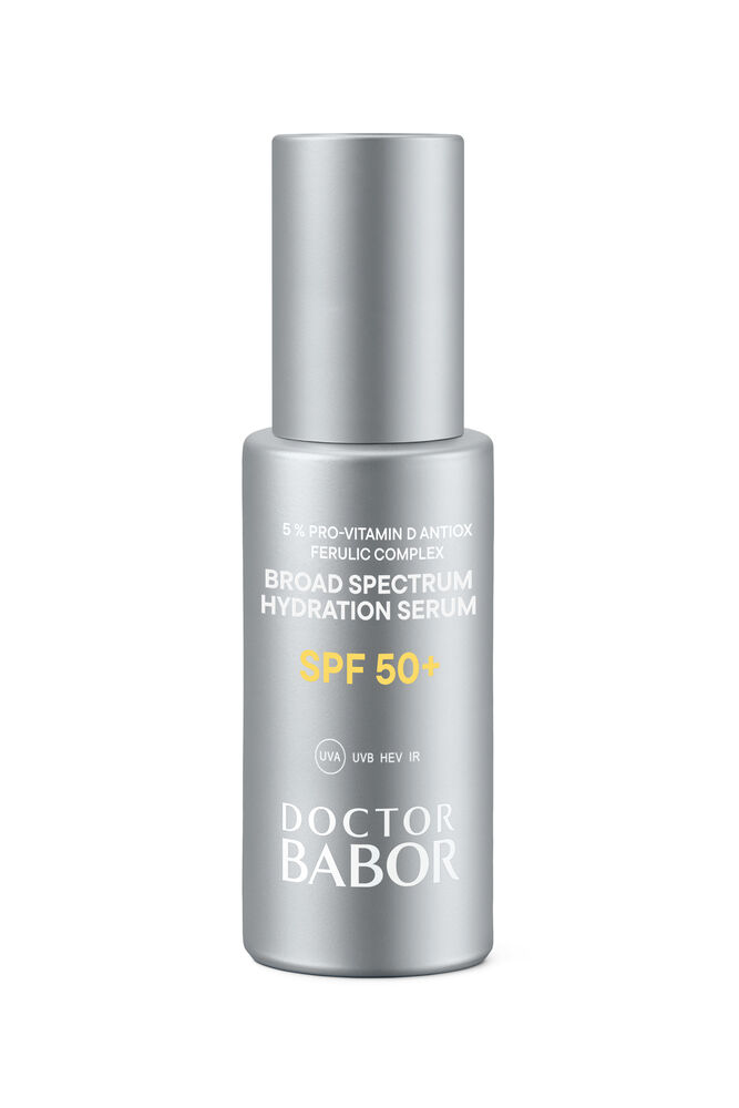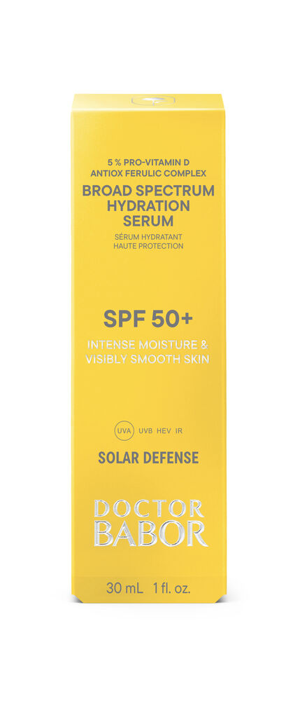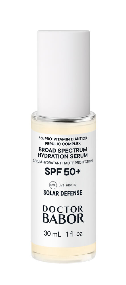 Com proteção de largo espetro SPF 50+ e 5% Pro-Vitamin D e Antiox Ferulic Complex, o DOCTOR BABOR SOLAR DEFENSE Broad Spectrum Hydration Serum ajuda a prevenir o envelhecimento cutâneo induzido pelo sol, enquanto a ectoína contribui para a proteção da matriz extracelular (ECM) e ajuda a reduzir a degradação do colagénio, para uma aparência visivelmente mais jovem. Com proteção UVA/UVB e um complexo de proteção contra luz azul e infravermelhos, ajuda a defender a pele, ao mesmo tempo que melhora a hidratação e a suavidade. Enriquecido com o exclusivo DOCTOR BABOR BIOGEN PLANT EXTRACT, o produto ajuda a melhorar a hidratação da pele, para uma pele mais suave e luminosa. O Broad Spectrum Hydration Serum SPF 50+, sem fragrância, proporciona uma sensação leve e protegida na pele. A textura delicada funde-se na pele e deixa-a confortável e hidratada. Este produto foi desenvolvido por especialistas BABOR nos laboratórios da empresa em Aachen, Alemanha, com base no “conscious standard” da BABOR. Para uma pele mais resistente, bem hidratada e equilibrada, mesmo sob o stress ambiental diário. Ingredientes ativos: A L-arginina, um aminoácido, ajuda a equilibrar a hidratação ao apoiar a barreira protetora da pele, retendo a humidade. Também contribui com propriedades antioxidantes. O requintado BIOGEN PLANT EXTRACT é obtido a partir de 8 plantas de diferentes géneros. Tem sido estudado e continuamente aperfeiçoado ao longo de vários anos. A ECTOÍNA, um extremólito de ocorrência natural, ajuda a proteger a pele contra a degradação da ECM e do colagénio relacionada com o stress oxidativo, através da redução da expressão de MMP, ao mesmo tempo que apoia a proteção da pele contra o stress oxidativo induzido pela luz, ajudando a manter uma aparência jovem. Modo de aplicação Advertências Filtros químicos UVA/UVB de elevada proteção, utilizados para proteção de largo espetro: |