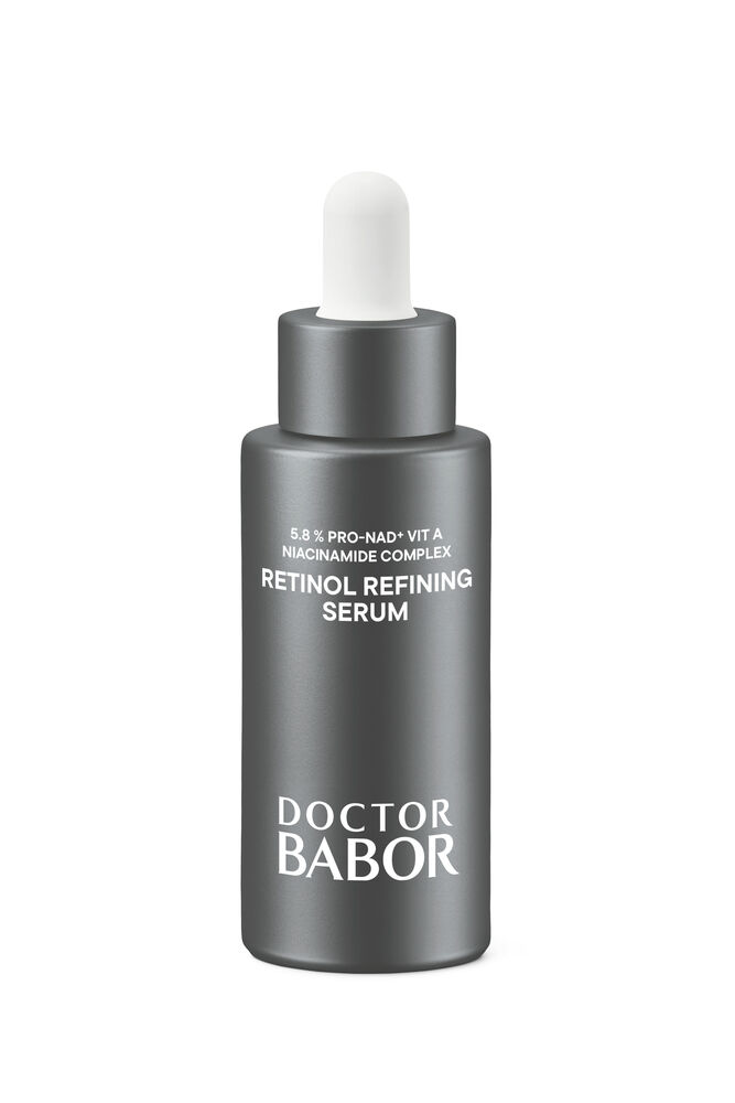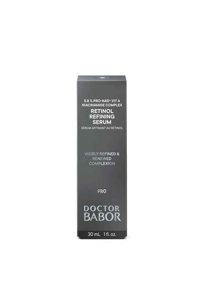 Sérum multieficaz com 5,8 % PRO-NAD⁺ VIT A NIACINAMIDE COMPLEX, que combina retinol encapsulado, derivado de retinol-HA e um ativador de NAD⁺ para reduzir rugas, imperfeições e pele opaca. Proporciona um grão de pele visivelmente mais refinado e uma tez lisa e uniforme. Contém TRPF [Triple Radical Protection Factor] para apoiar a proteção antioxidante. Retinol duplo com retinol encapsulado e derivados de retinol-HA (ácido hialurónico) reduz a aparência de rugas, imperfeições e aspeto baço enquanto a niacinamida e óleo de amêndoas apoiam a barreira cutânea DOCTOR BABOR PRO: