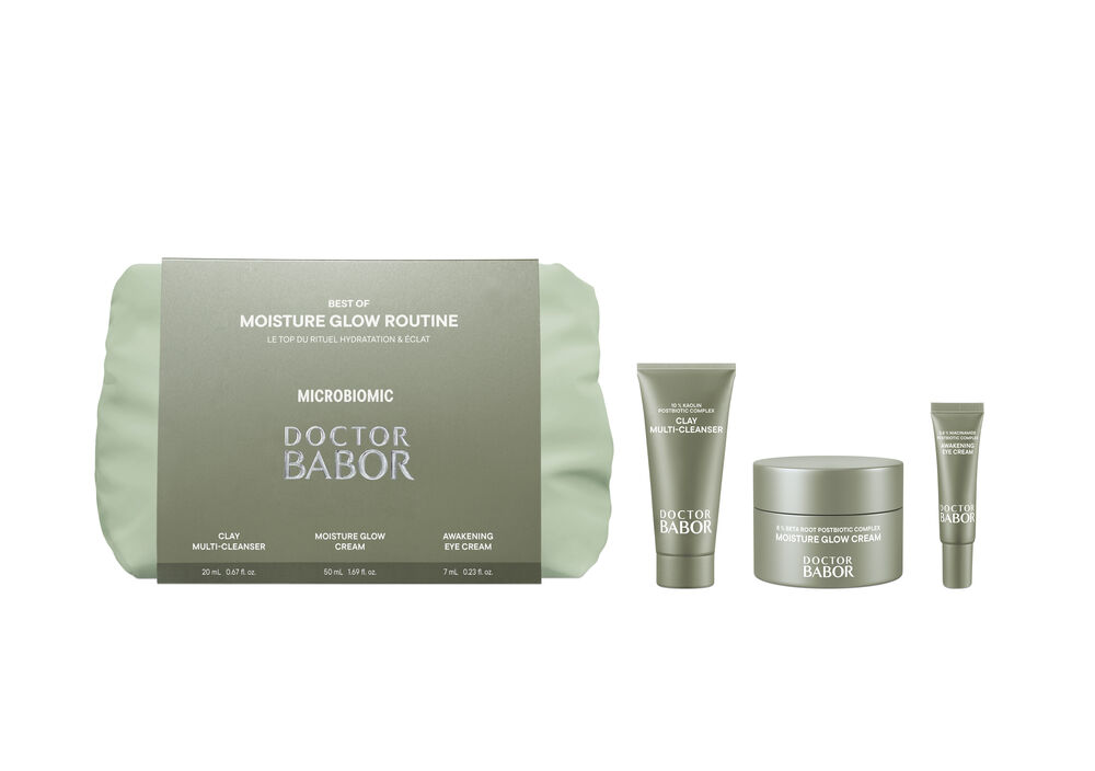 A rotina de edição limitada, 100% vegan, contém três best-sellers MICROBIOMIC queatuam em conjunto para repor as reservas de hidratação da pele e potenciar a sua luminosidade natural. Está disponívela um preçoespecial e inclui–o MOISTURE GLOW CREAM –o CLAY MULTI CLEANSER e o AWAKENING EYE CREAM em formatosminiatura. Uma bolsa cosmética de elevada qualidade, alinhada com o design do produto, completa o conjunto e torna-o num presente perfeito. Contém: CONTEÚDO: BENEFÍCIOS |