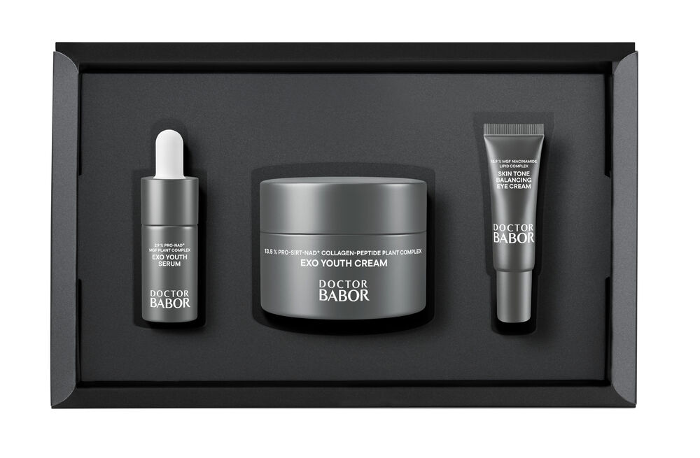 Rotina de precisão profissional para pele exigente com sinais visíveis de envelhecimento. Com exossomas, NAD+ e ativadores de sirtuínas para uma pele visivelmente rejuvenescida. Composto por: